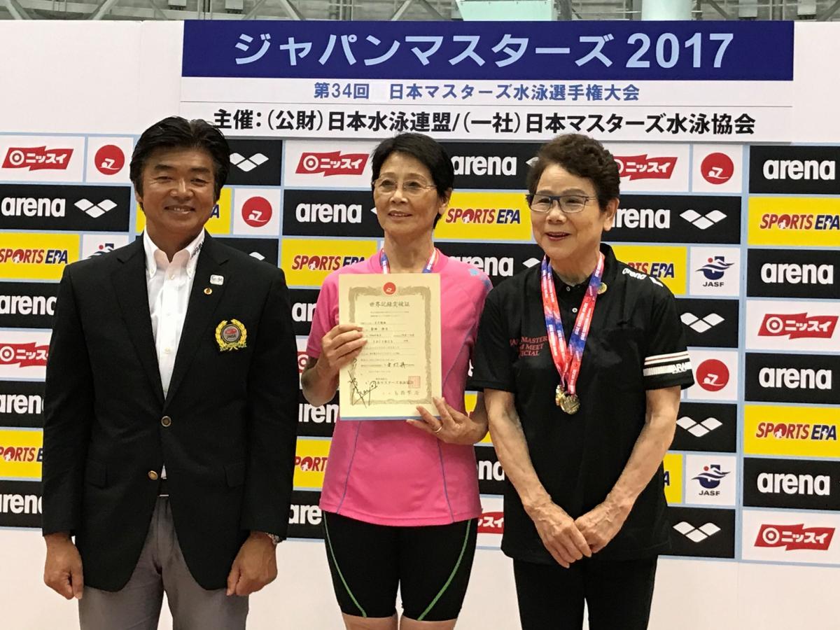 日本新記録も4つ誕生し、会場特設の表彰ボードの前での表彰式に皆さんの嬉しい顔が輝いていました。