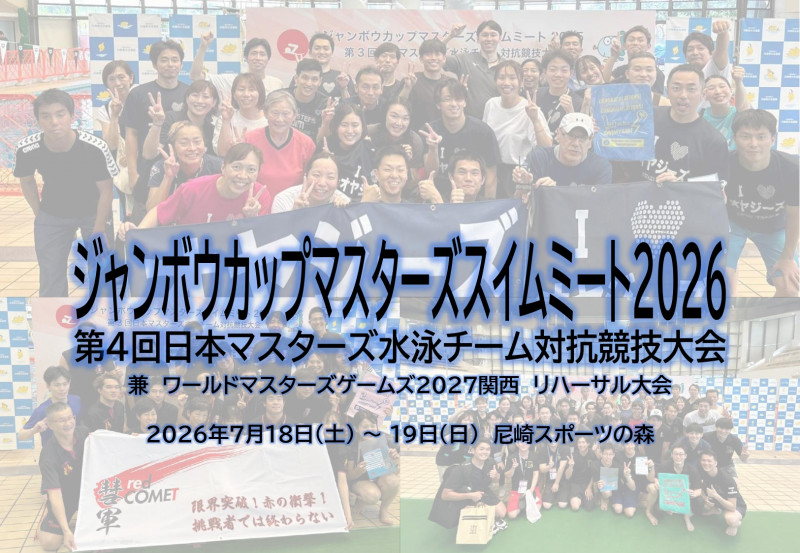 東京海上日動火災保険株式会社より 2026年総合補償制度のご案内東京海上日動火災保険株式会社の総合補償制度のご案内です。マスターズ水泳協会登録チームの皆様もお申込みいただけます。試合だけでなく合宿や練習会などでも対応できますのでご検討ください。詳しくは下記ご案内をご覧ください。 2026総合補償制度のご案内.pdf(10MB)